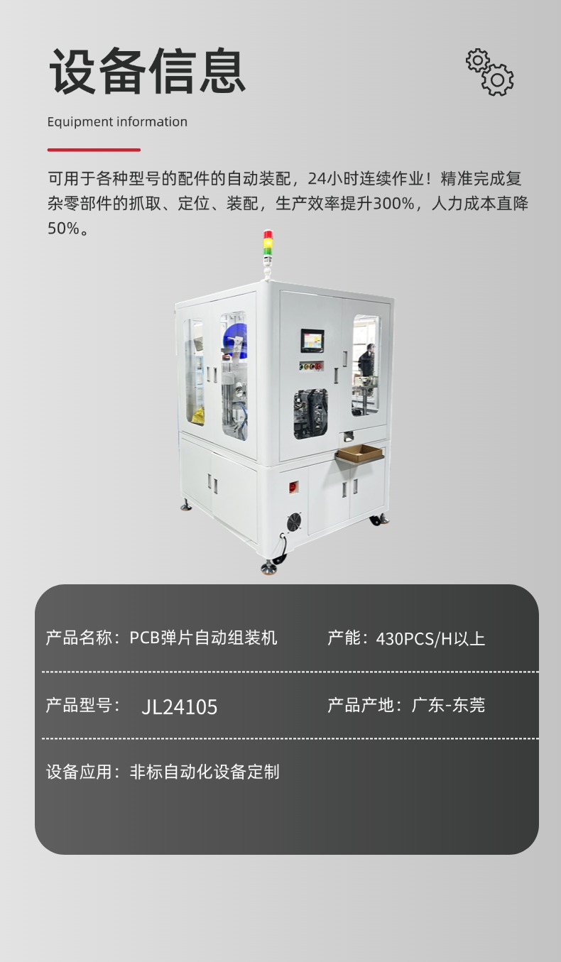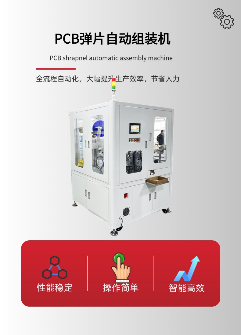 高频电刀笔配件PCB弹片组装机是一款专门用于医疗电刀笔生产的高精度自动化设备,它主要完成金属弹片与PCB电路板的快速、精准组装