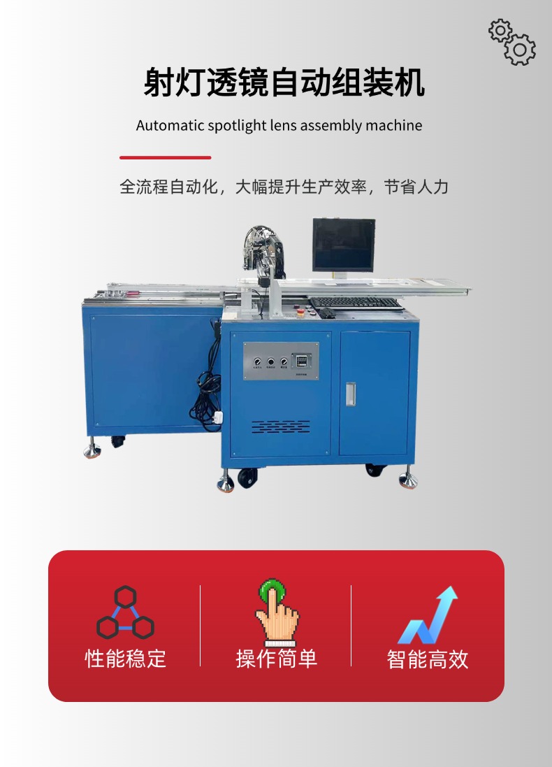 射灯透镜自动组装机是用于自动化完成射灯透镜上料、定位、组装和压合固定等一系列工序的专业设备,能显著提升生产效率和产品一致性