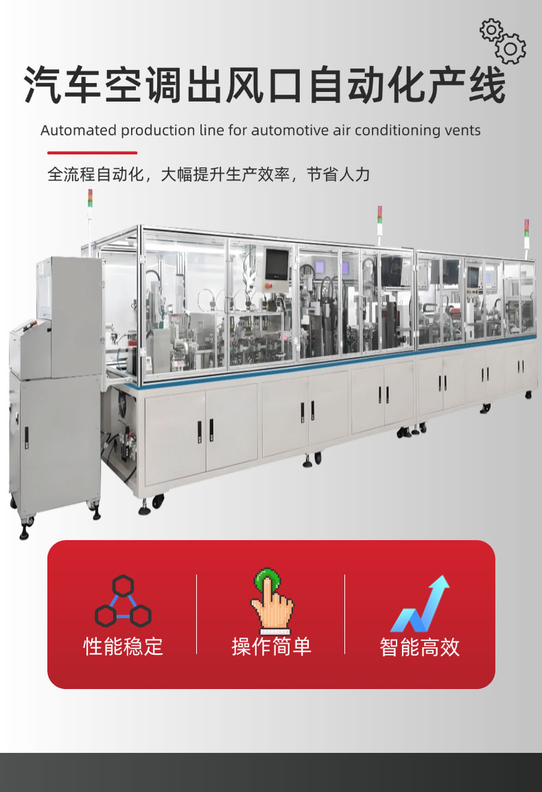 - 柔性化适配能力:通过更换工装夹具、调整程序参数,可快速切换不同车型(轿车、SUV、新能源汽车等)、不同规格(横向出风口、纵向出风口、圆形出风口)的产品组装,换型时间≤30 分钟,满足多品种、小批量生产需求。